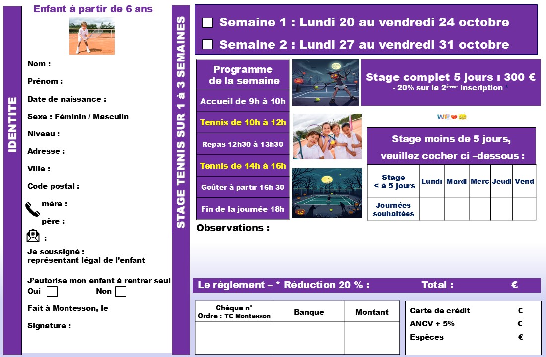 Vous voudrez bien inscrire vos enfants sur place au tennis club de Montesson aux heures d’accueil du secrétariat.